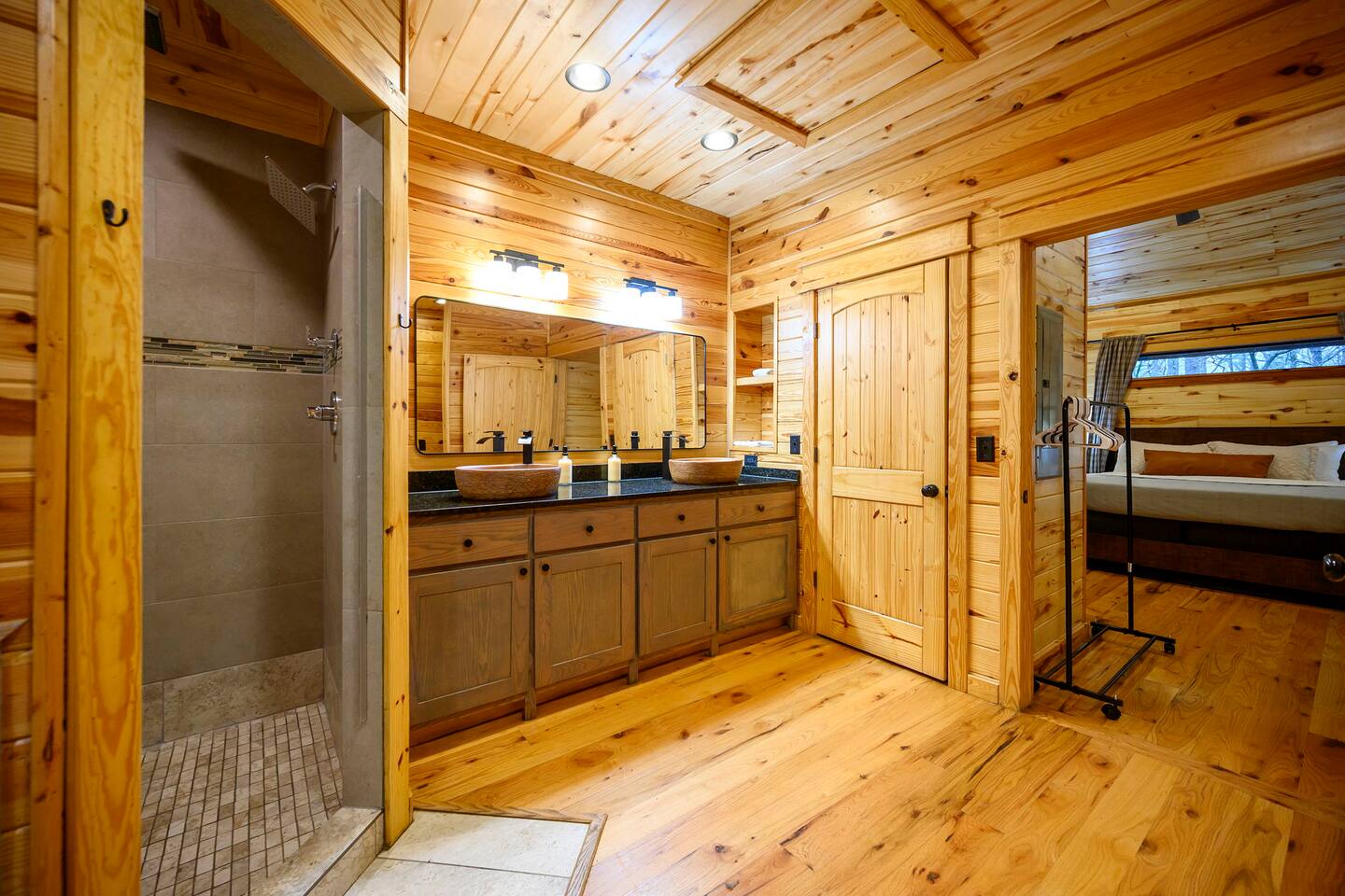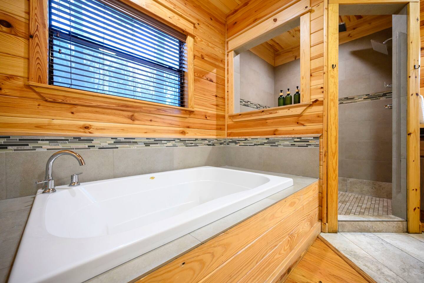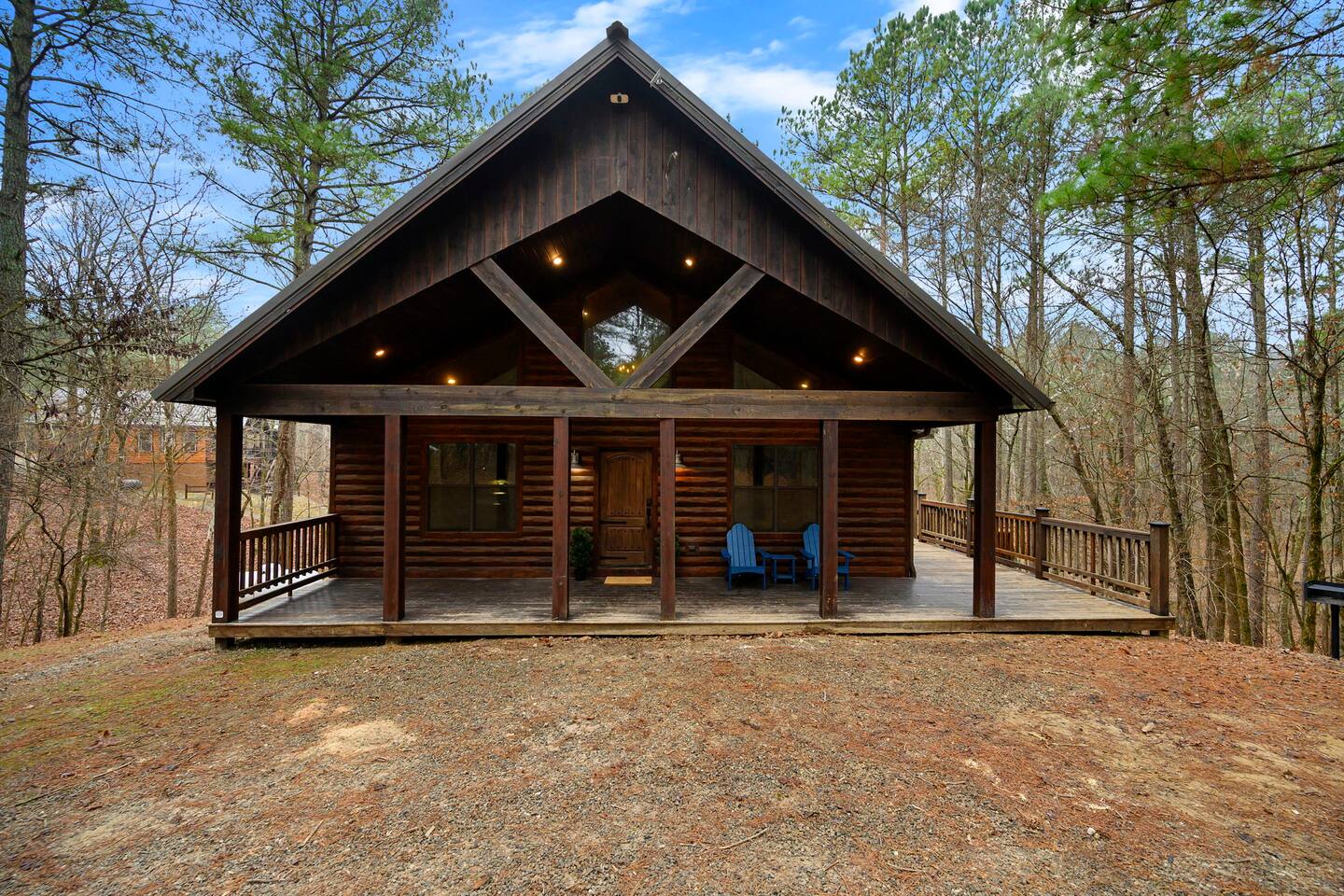 The cabin is a few min drive to Hochatown. The private roads to the front entrance are mostly paved. There's a couple part of the road that are gravel/dirt. The driveway is packed gravel.